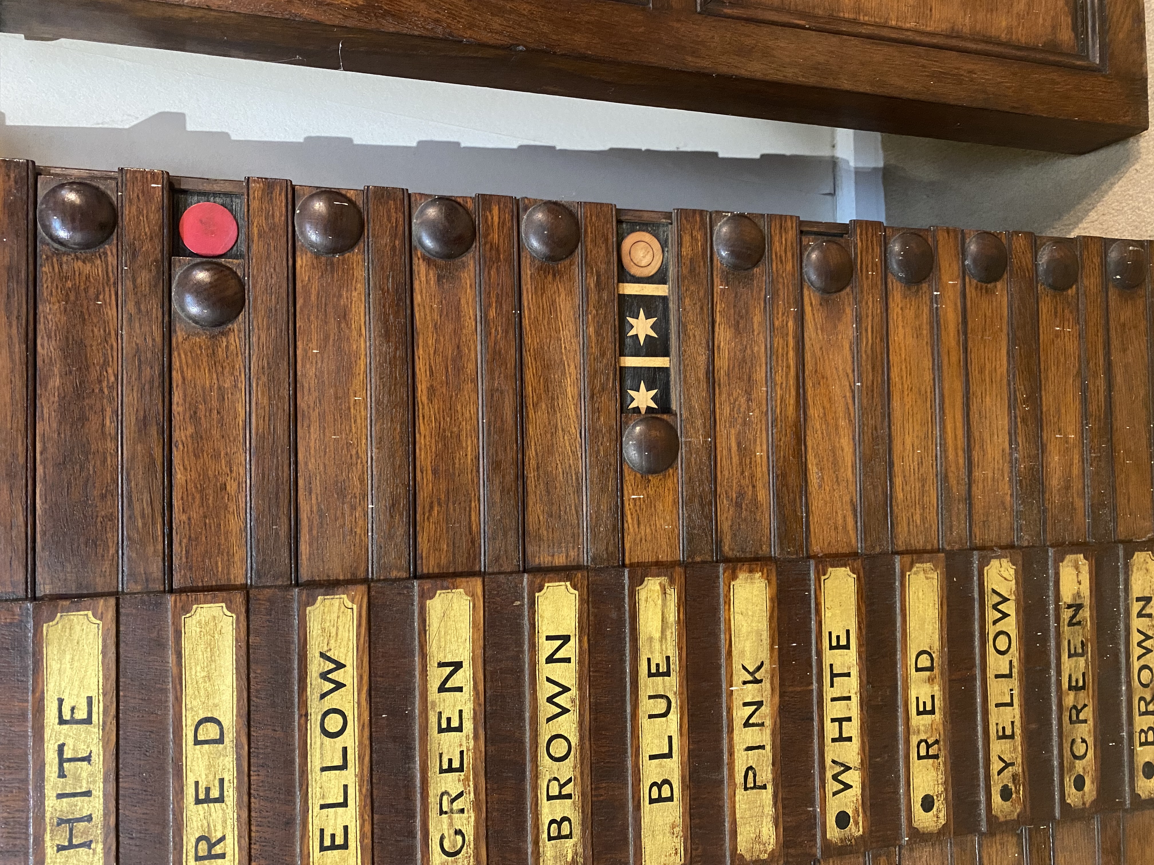 An oak framed Life Pool marker by Thurston of London circa 1840