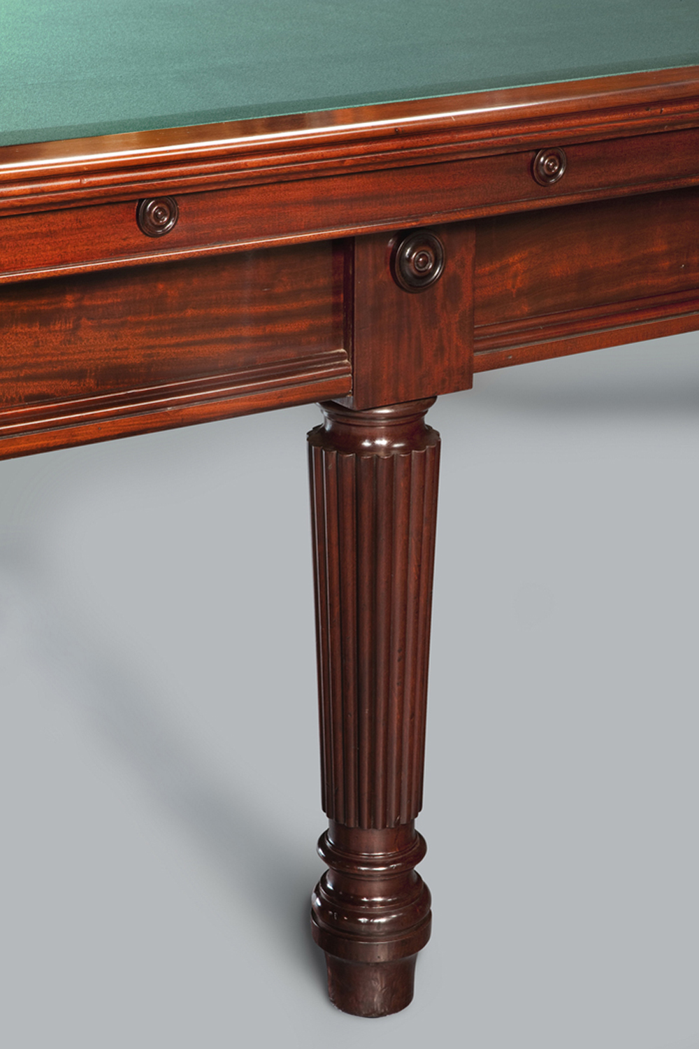 RESERVED: This superb quality mahogany full size English Billiard Snooker table is the quintessence of Gillows craftsmanship,the rectangular top is set upon eight tapering turned and reeded legs,the restrained decoration of turned bosses to the sides and elegant reeding to the edges accentuates the wonderful colour of the wood.